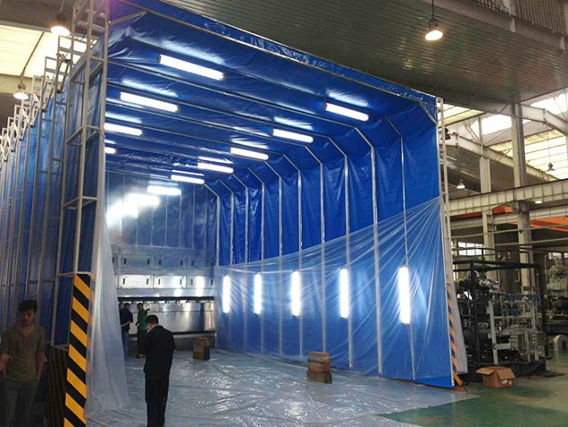 伸缩性喷漆房是一种新型可移动式喷漆房,除具有传统喷漆房的密闭、通风、除漆雾功能外,该喷漆房还可以拉伸,喷漆的空间可变大变小,有效节约喷漆时间,特别适用行车吊运场所使用。
